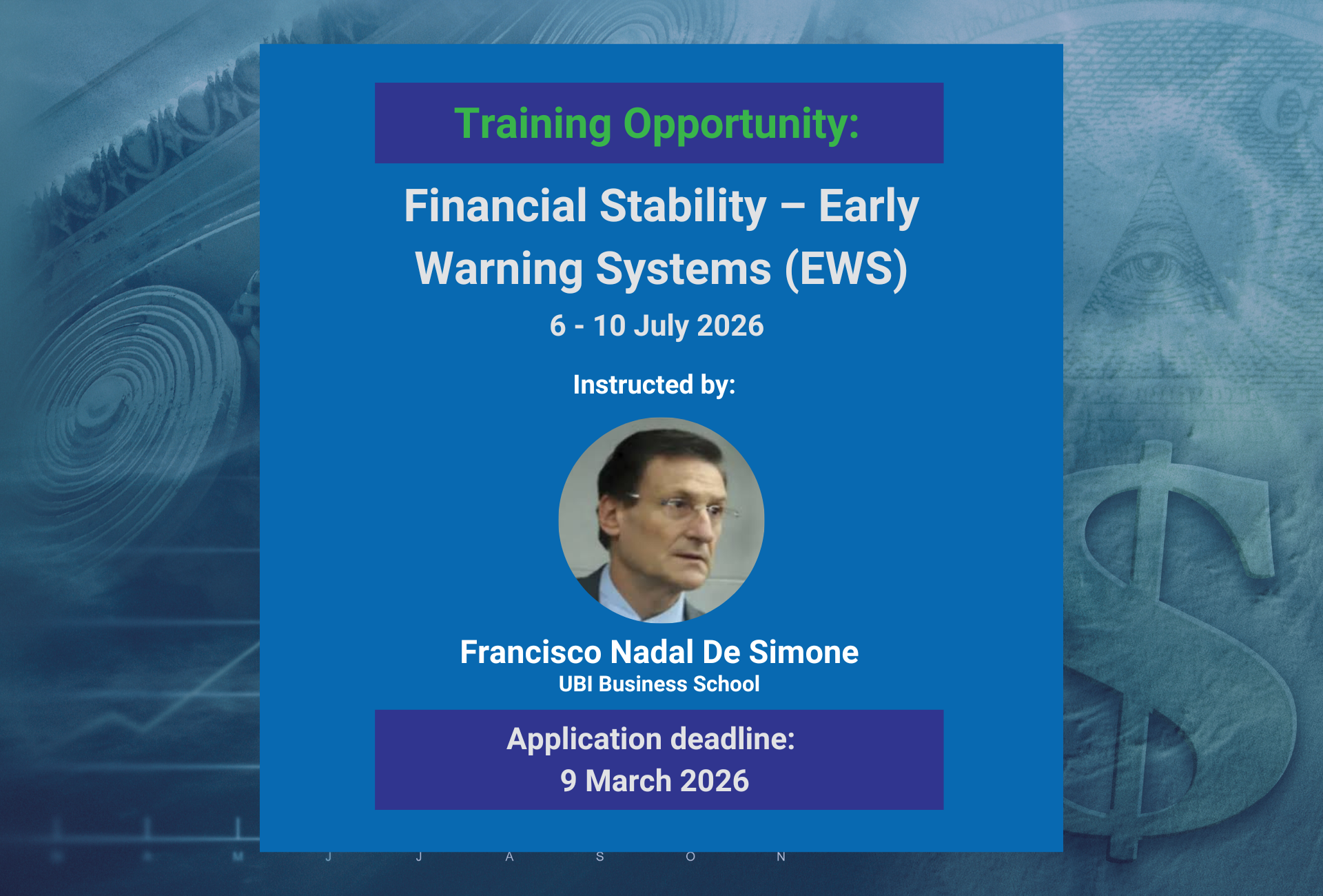 Master’s students, PhD candidates, and postdoctoral researchers in economics or finance, as well as researchers and policymakers working in financial stability, holding at least a Master’s degree in Economics or Finance.